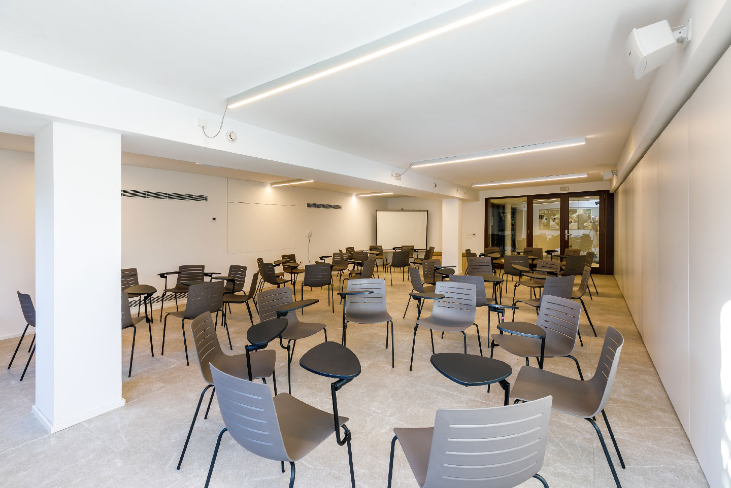 Además, contamos con amplias salas polivalentes, con modernos equipamientos audiovisuales y diferentes capacidades que se adaptan a la perfección a todas tus necesidades: