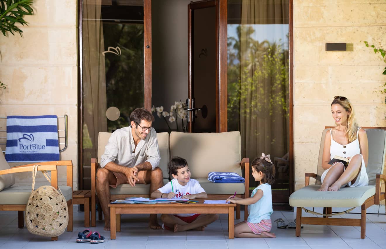 Nuestro hotel PortBlue Club Pollentia Resort & Spa**** es un gran resort familiar de 85.000m2, repleto de zonas exteriores y zonas comunes diseñadas exclusivamente para lograr las vacaciones familiares perfectas. PortBlue Club Pollentia Resort & Spa**** cuenta con un entorno ideal de naturaleza desbordante, playas de arena blanca y agua cristalina donde jugar, divertirse o realizar excursiones maravillosas donde vivir grandes aventuras. Nuestras habitaciones familiares son fantásticas para acoger a toda la familia, cómodas, funcionales y con la privacidad necesaria para toda la familia.